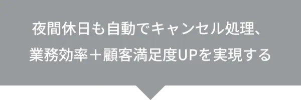 楽天市場内でのキャンセル受付業務を自動化します。土日休日、深夜などいつでもキャンセル受付をできるようになるため、ユーザーは深夜や早朝、週末、休日であってもキャンセル手続きを行うことができ、顧客満足度向上につながります。